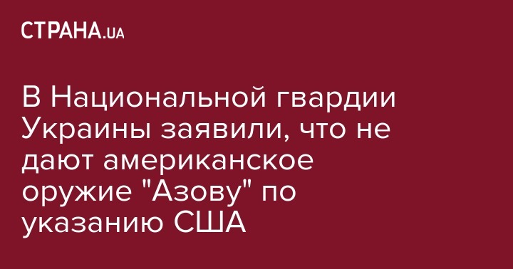 Национальная гвардия Украины решила не давать американское оружие полку "Азов" из-за указанию США.