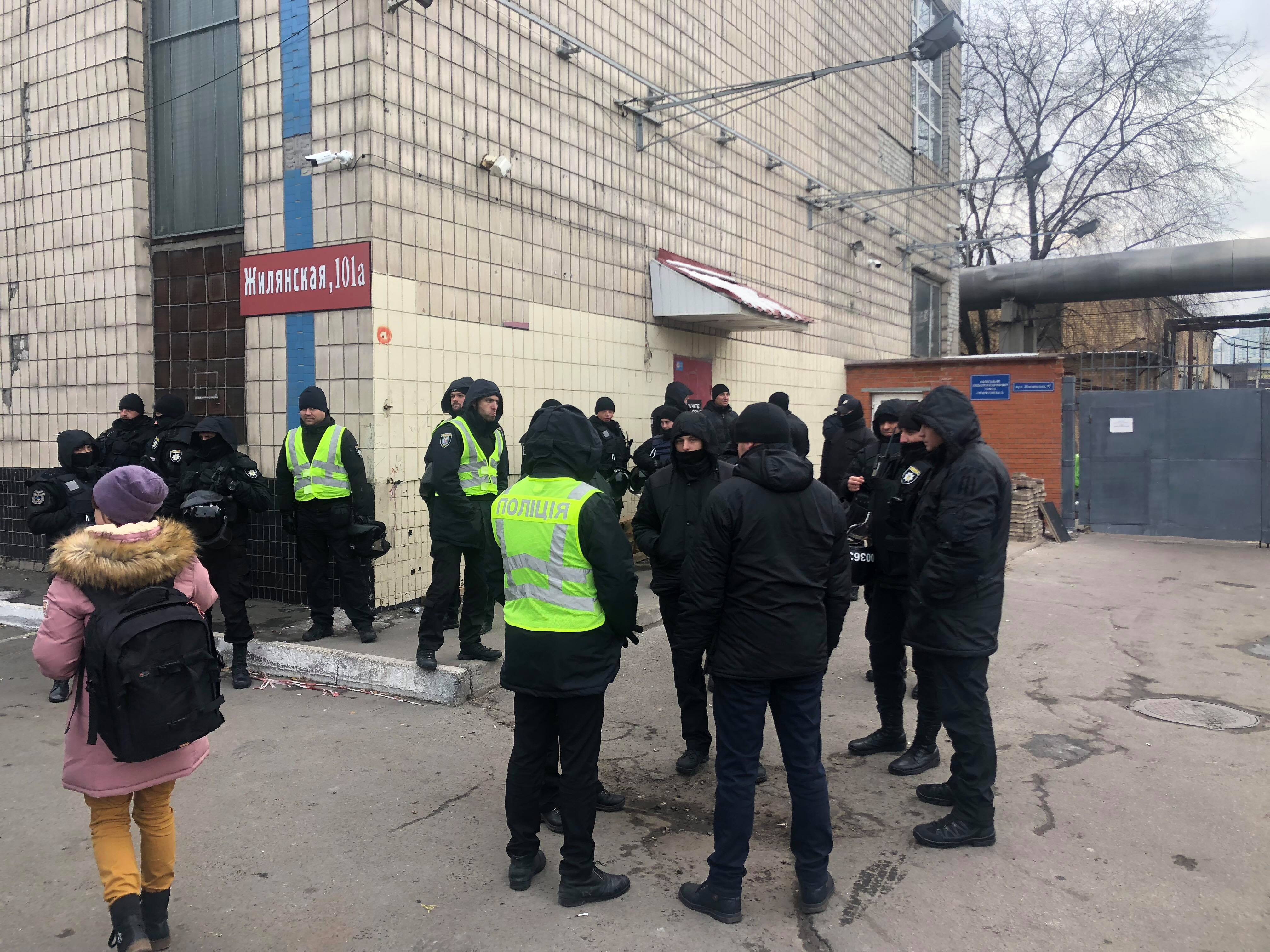 На месте находятся около 30 человек. Среди них - члены УНСО, праворадикальной Украинской национальной солидарной организации. Также у здания дежурят правоохранители.