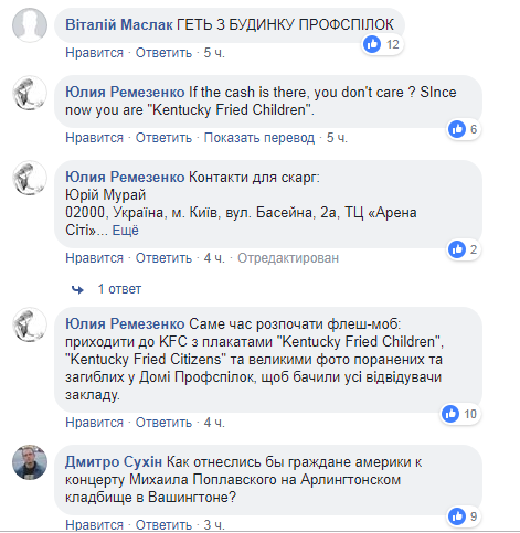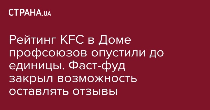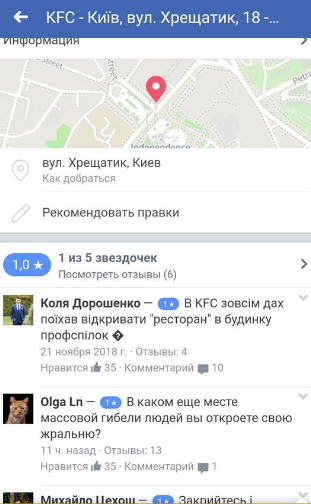 После открытия ресторана KFC в здании Профсоюзов в Киеве, которое состоялось 21 ноября, пользователи Facebook обвалили рейтинг страницы этой сети в Украине. Администраторы паблика в свою очередь 22 ноября закрыли возможность оставлять отзыв.
