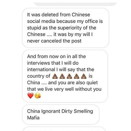 Также человек в переписке, который может оказаться Стефано Габбано, назвал Китай "необразованной, грязной и вонючей мафией". Эта переписка только подлила масла в огонь.