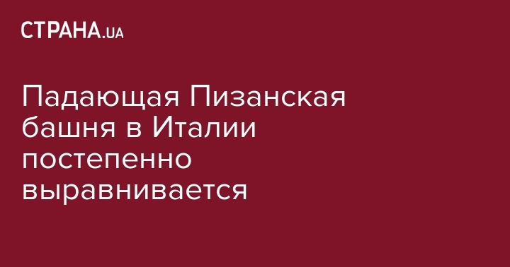 Главная достопримечательность Италии, Пизанская башня, известная во всем мире своим наклоном, постепенно выравнивается. Об этом пишет ВВС.