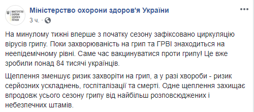 В Украине на прошлой неделе зафиксировали первый подтвержденный случай заболевания гриппом. Об этом сообщила пресс-служба Министерства здравоохранения в Facebook. По данным ведомства, циркуляцию вирусов гриппа впервые с начала сезона была зафиксирована в период с 12 по 18 ноября.