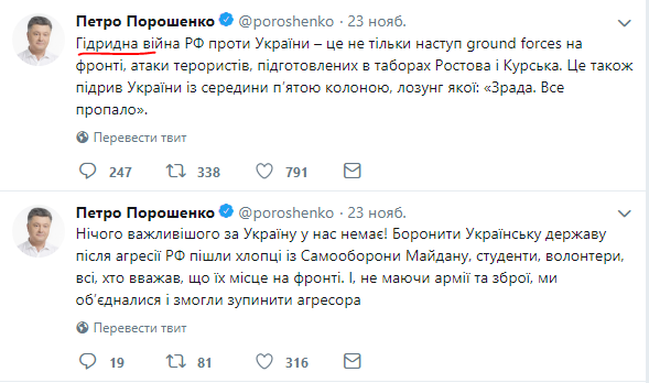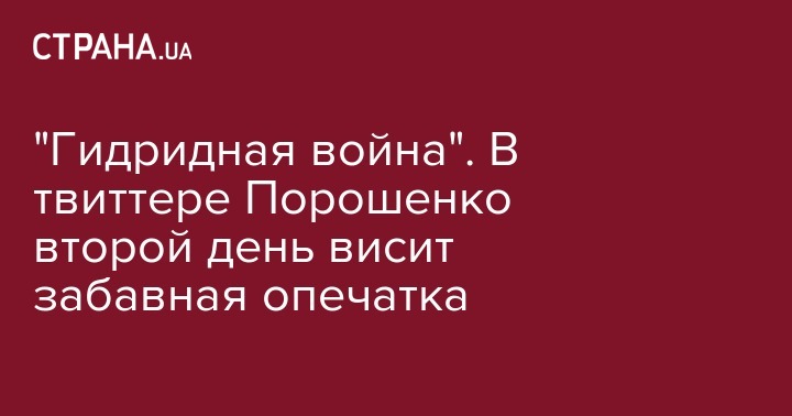 Президент Украины Петр Порошенко разместил в своем официальном Twitter пост от 23 ноября про "гидридную войну" России с Украиной. Скорее всего, речь идет о "гибридной войне". Однако досадная опечатка так и осталась на странице гаранта. И уже успела разлететься по соцсетям.