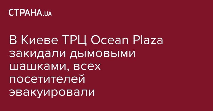 Вечером в понедельник, 26 ноября, в Киеве неизвестные бросили несколько дымовых шашек на территорию ТРЦ Ocean Plaza ("Оушен плаза", Антоновича 176). После задымления посетителей комплекса начали эвакуировать.