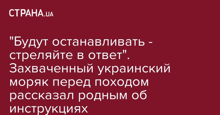 Один из захваченных Россией украинских моряков накануне инцидента в Керченском проливе говорил своим родственникам, что им дали команду не останавливаться, если кораблям будут перекрывать путь. Об этом сообщает Информатор.
