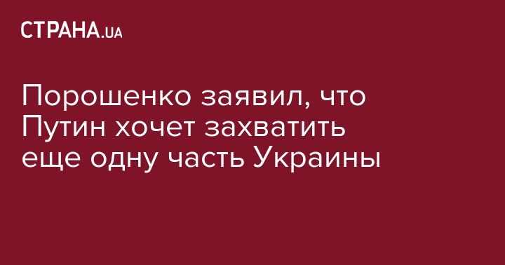 Порошенко заявил, что Путин хочет захватить еще одну часть Украины