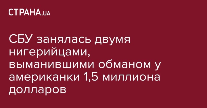 СБУ занялась двумя нигерийцами, выманившими обманом у американки 1,5 миллиона долларов