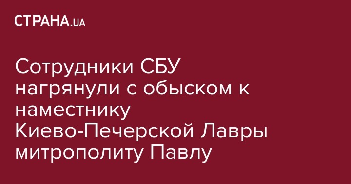 В пятницу, 30 ноября, СБУ пришла с обыском к наместнику Киево-Печерской Лавры митрополиту Павлу. Сотрудники Службы безопасности Украины под процессуальным руководством прокуратуры Киевской области, во исполнение поручения следственного управления ГУ Нацполиции в Киевской области проводят санкционированные следственные действия по месту жительства настоятеля Свято-Успенской Киево-Печерской Лавры.