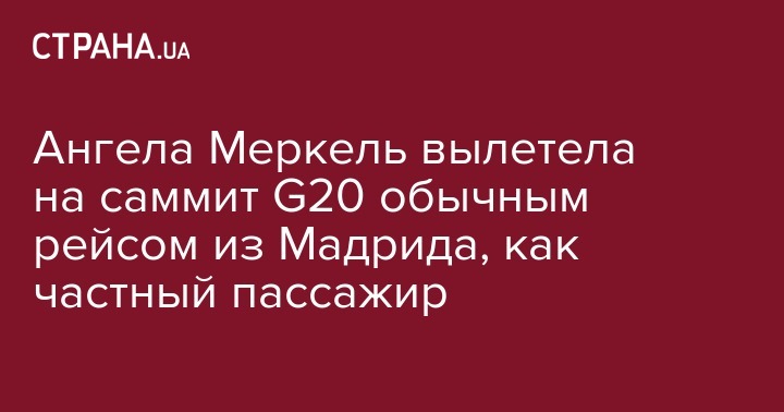 Канцлер Германии Ангела Меркель в пятницу утром, 30 ноября, продолжила свой путь на саммит G20 в Аргентину, куда она не попала накануне из-за поломки самолета. Меркель отправилась в Буэнос-Айрес из Мадрида на борту самолета местной авиакомпании, передает ТАСС.