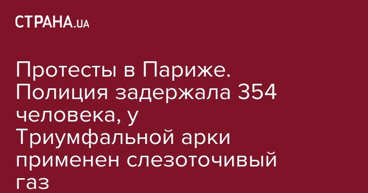 Протесты в Париже. Полиция задержала 354 человека, у Триумфальной арки применен слезоточивый газ