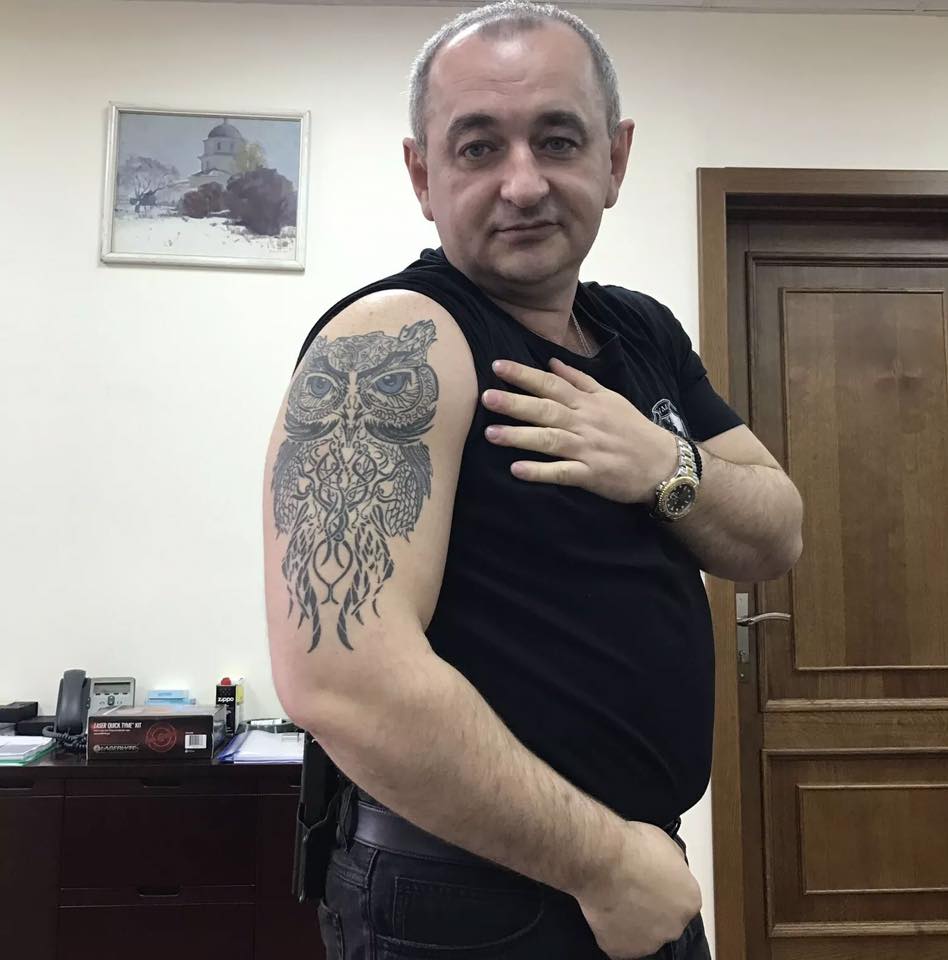 Это тату он показал еще в апреле 2017 года, пояснив, что он с одной стороны "белая ворона" в правоохранительных органах Украины, а с другой - "сова".