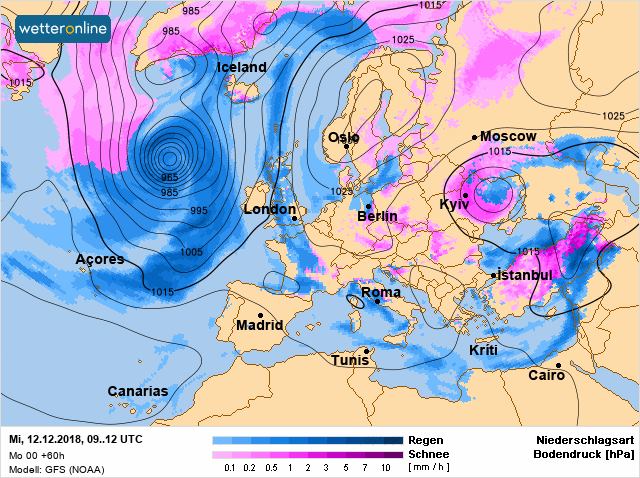 12 декабря циклон охватит непогодой большинство Украины, кроме западных областей. В Киеве 12-13 декабря погода также усложнится, будет мокрый снег, порывистый ветер и гололед. Температура воздуха ночью до -1 градуса, днем ​​0...+1 градус.