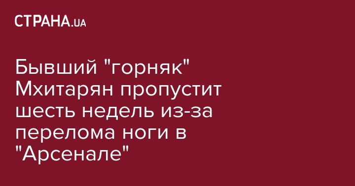 Экс-игрок "Шахтера" армянский полузащитник лондонского "Арсенала" Генрих Мхитарян пропустит шесть недель из-за перелома ноги. Он повредил плюсневую кость правой ноги в матче Кубка английской лиги с лондонским "Тоттенхэмом" (0:2). Об этом сообщает "Советский спорт".