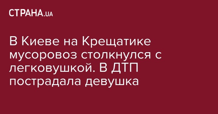 В самом центре Киева в ночь с 30 на 31 декабря произошло ДТП при участии мусоровоза, в результате которого пострадала девушка. Об этом сообщает "Информатор".