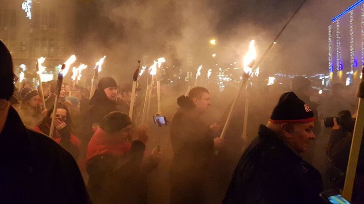 Ну, а националистические организации традиционно отметили день рождения своего кумира шествием, которое прошло по центру Киева.