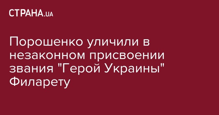 Порошенко уличили в незаконном присвоении звания "Герой Украины" Филарету