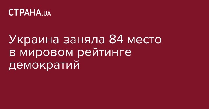 По итогам 2018 года Украина сохранила 84 место в рейтинге "Индекс демократии", оставив за собой статус "гибридной демократии". Ежегодный рейтинг был опубликован в издании The Economist.