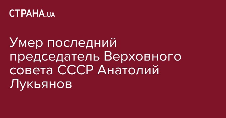 Известный советский партийный и государственный деятель Анатолий Лукьянов скончался на 89-м году жизни. Эту информацию подтвердила его дочь, юрист Елена Лукьянова.