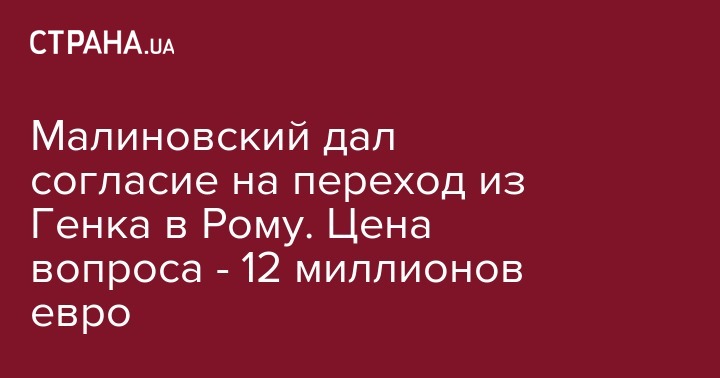 Полузащитник сборной Украины и звезда бельгийского Генка Руслан Малиновский дал свое предварительное согласие на переход в итальянскую Рому. Руководство римского клуба, в свою очередь, продолжает изучать детали будущей сделки. Об этом передает Футбол 1 со ссылкой на Gianlucadimarzio.