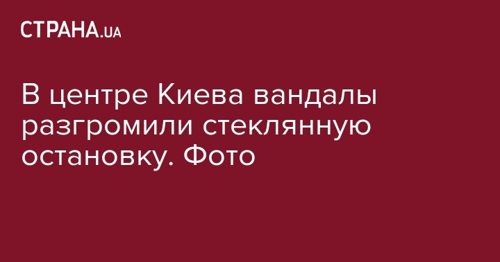 В центре Киева вандалы разгромили стеклянную остановку. Фото