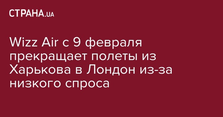 "Поскольку спрос и туристические сезоны влияют на авиационную отрасль, Wizz оптимизировала выполнения рейсов на своих украинских маршрутах и с 9 февраля приостанавливает выполнение перелетов по направлению Харьков-Лондон ("Лутон") в течение зимнего сезона", - отмечается в заявлении авиакомпании.