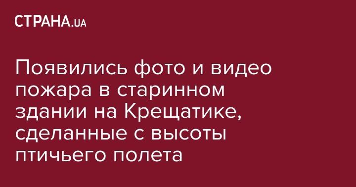 Появились фото и видео пожара в старинном здании на Крещатике, сделанные с высоты птичьего полета