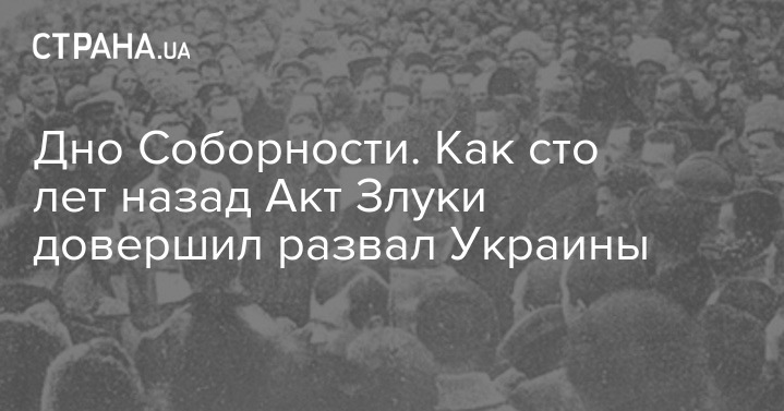 Сегодня Украина отмечает юбилей "Злуки" – акта о соединении УНР и ЗУНР. 22 января ему исполняется ровно сто лет.
