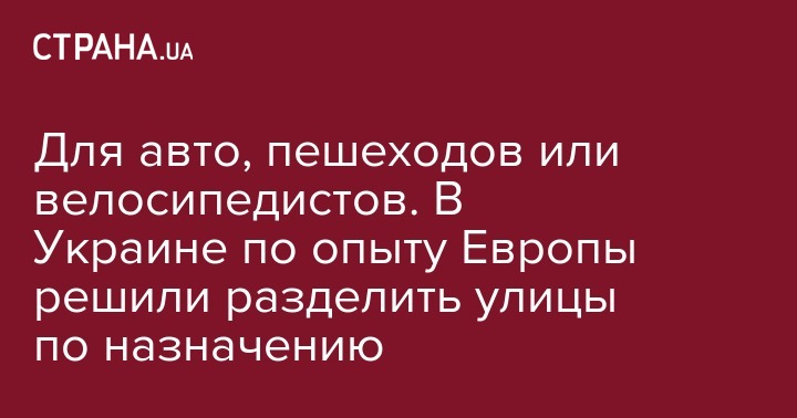 Для авто, пешеходов или велосипедистов. В Украине по опыту Европы решили разделить улицы по назначению