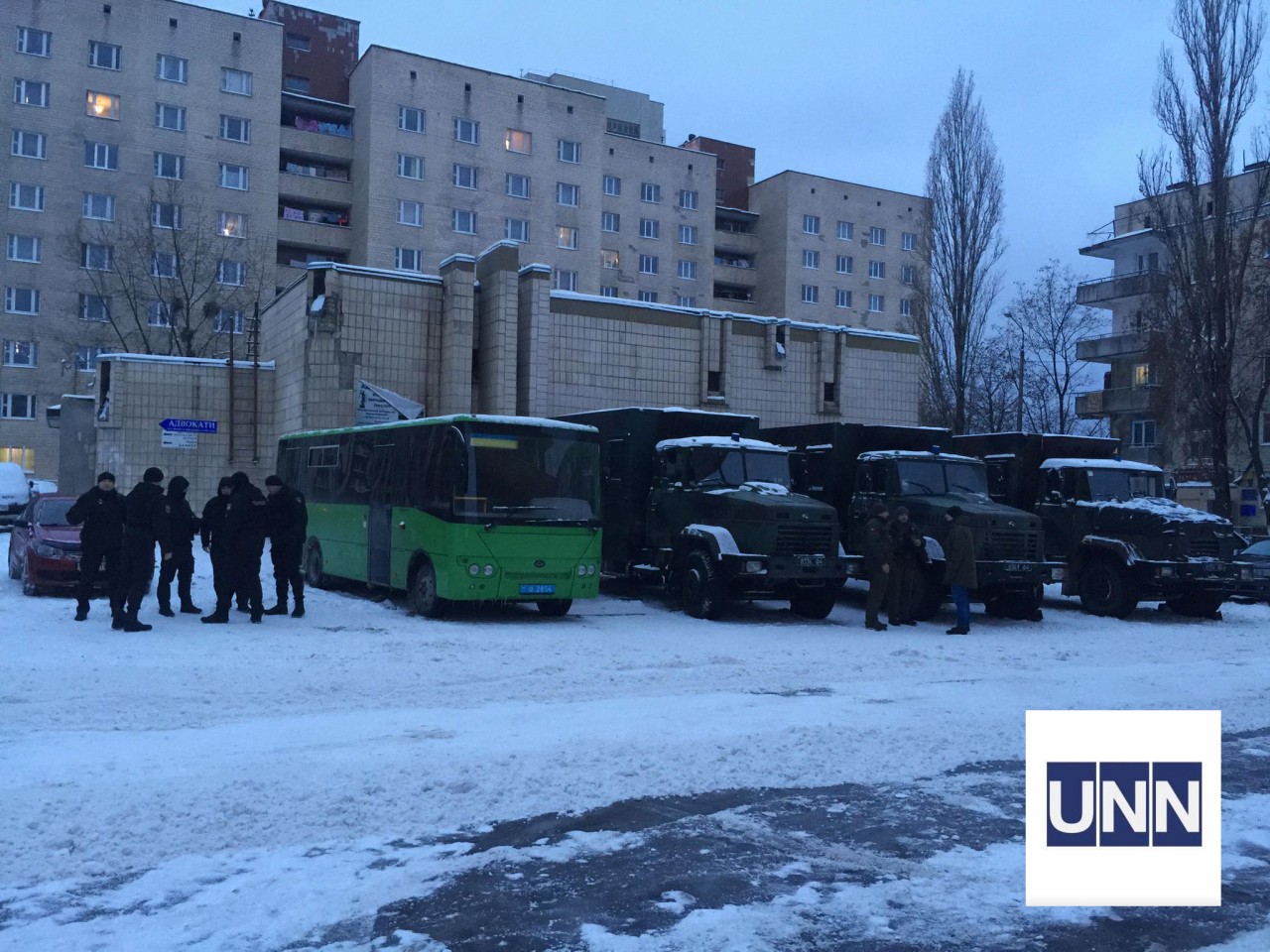 Три автозака и автобус с нацгвардейцами. Охрану Оболонского суда в Киеве усилили перед оглашением приговора Януковича