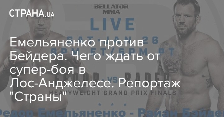 26 января в Лос-Анджелесе состоится финальный бой между двумя тяжеловесами смешанных единоборств ММА - мировой звездой смешанных боевых искусств россиянином Федором Емельяненко и действующим чемпионом Bellator американцем Райаном Бейдером.