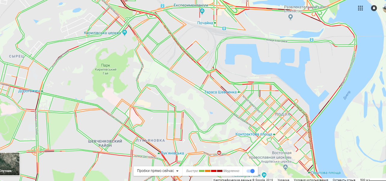 Самые крупные заторы, как и обычно, наблюдаются в центре столицы, в частности, на улицах Вадима Гетьмана, Сечевых Стрельцов, Вячеслава Чорновола, Воздухофлотском проспекте, проспектах Академика Глушакова и Валерия Лобановского.