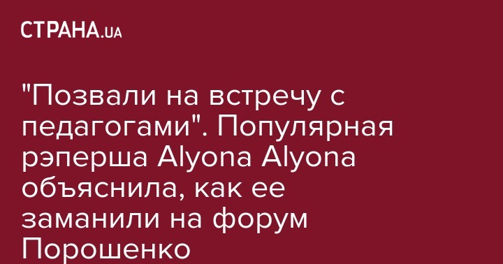"Позвали на встречу с педагогами". Популярная рэперша Alyona Alyona объяснила, как ее заманили на форум Порошенко