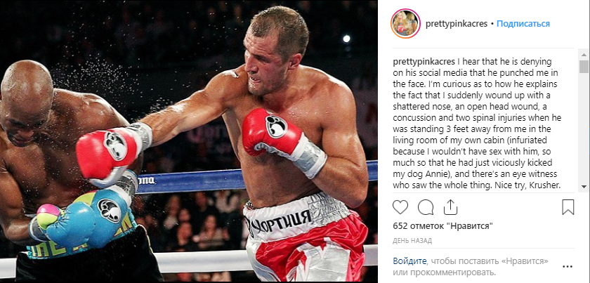 Российский боксер пнул собаку и разбил нос ее американской хозяйке, которая ему отказала