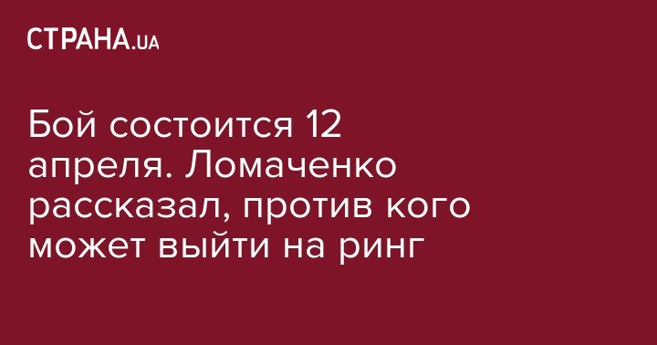 Украинский боксер Василий Ломаченко, признанный лучшим боксером вне категории, в следующий раз выйдет на ринг 12 апреля 2019 года, кандидатура его противника еще однозначно не утверждена.