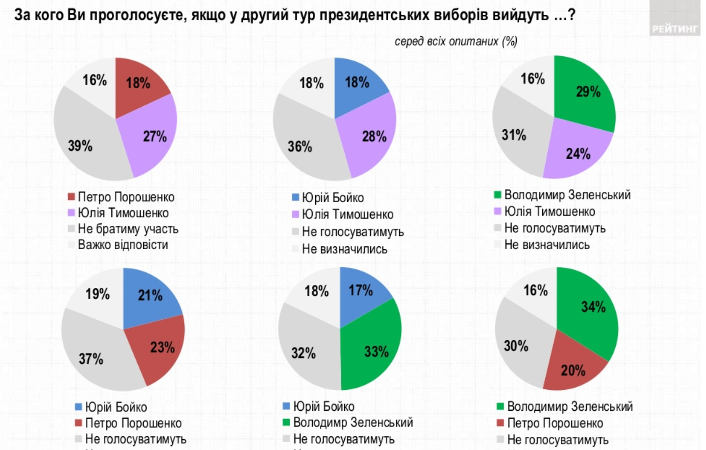 У роста рейтинга Зеленского пока виден еще один итог – он все дальше отодвигает от второго тура Петра Порошенко.