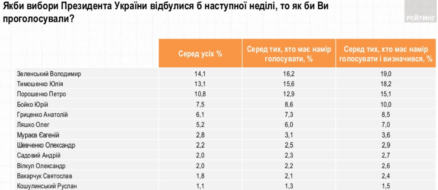 Еще одно исследование дает Зеленскому первое место. Это совместный опрос трех социологических служб – Социс, Центр Разумкова и КМИС, – который охватил 11 тысяч респондентов.