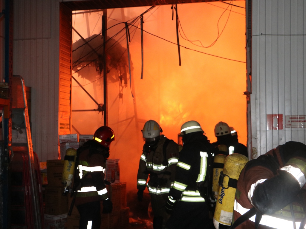 В Киеве на месте пожара складских помещений недалеко от станции метро "Лесная" существует угроза обвала строительных конструкций. Об этом утром сообщает пресс-служба ГосЧС Киева.