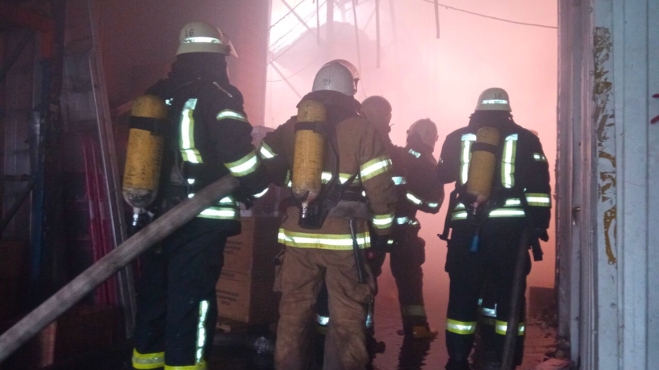 Как сообщала "Страна", пожар на складах возле "Дарынка" превысил площадь футбольного поля. Сложность ликвидации пожара заключалась в отсутствии на территории объекта наружного противопожарного водоснабжения, поэтому спасателям приходится проводить магистральные линии с дальней дистанции.