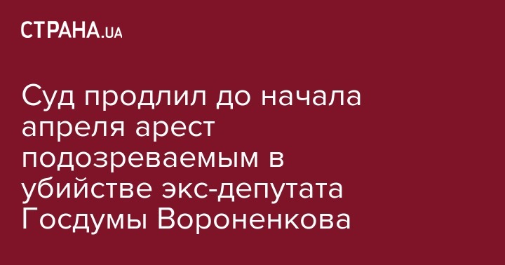 Шевченковский районный суд Киева продлил меру пресечения в виде содержания под стражей подозреваемым в убийстве бывшего депутата Государственной Думы РФ Дениса Вороненкова в марте 2017 года Ярославу Тарасенко и Александру Лосю.