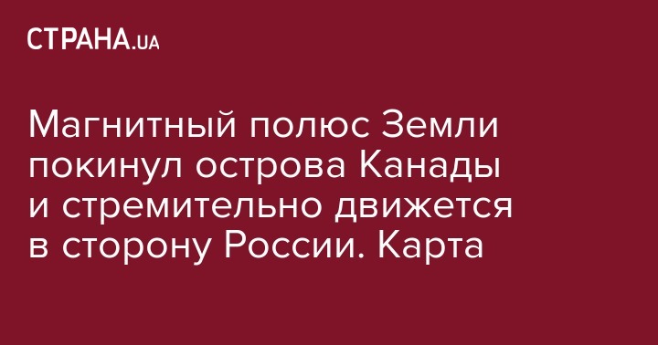 Магнитный полюс Земли покинул острова Канады и стремительно движется в сторону России. Карта