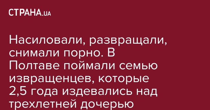 Насиловали, развращали, снимали порно. В Полтаве поймали семью извращенцев, которые 2,5 года издевались над трехлетней дочерью