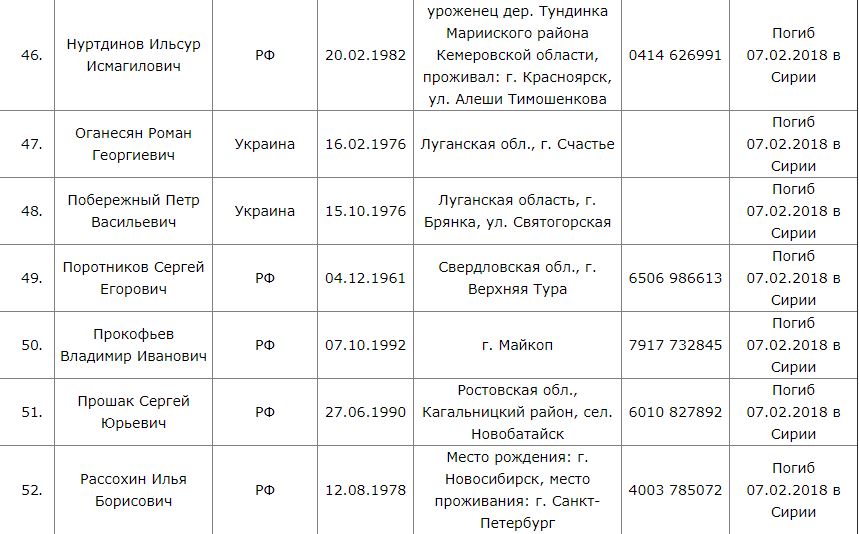 По данным СБУ, участие российских наемников в атаке на силы сирийской оппозиции в феврале 2018 года "непосредственно оплатил российский бизнесмен и "кремлевский повар" Евгений Пригожин". "7.02.2018 в результате дерзкой атаки во время перемирия на силы сирийской оппозиции в районе Дейр-эз-Зора погибло более ста российских "ихтамнетов"", - сообщили в СБУ. Спецслужба также обнародовала паспорта 57 россиян-членов "ЧВК Вагнера", которых уничтожили в Сирии.