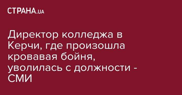 Директор Керченского политехнического колледжа, в котором студент Владислав Росляков убил 21 человека, написала заявление об увольнении "по собственному желанию". Об этом в пятницу, 8 февраля, пишет Керчь.ФМ со ссылкой на собственный источник.