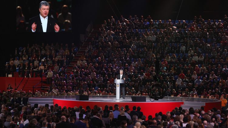 13:59 Петр Порошенко объявил, что идет на второй строк. Все люди в зале встали и аплодируют ему стоя. Он свел программу к двум-трем стратегическим целям - избавление людей от бедности, вступление страны в ЕС и НАТО, возвращение мира на выгодных для Украины условиях и восстановление территориальной независимости. Он говорит о том, что не позволит, чтобы "в офисе украинского президента сидел зацепленный на крючок агент РФ" или тот, "который станет перед хозяином Кремля на колени".