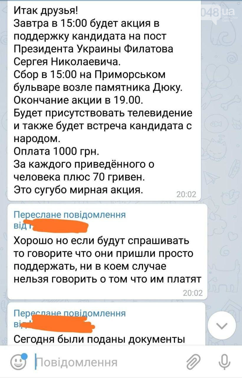 Все началось несколько дней назад - в группах студентов в Viber и на сайтах объявлений всем желающим предлагали "поработать" - постоять на митинге. В некоторых объявлениях речь шла о поддержке некоего кандидата в президенты. Называлось даже имя "кандидата" - Сергей Филатов. И желающих помитинговать за деньги не смутило то, что такого кандидата в президенты Украины не существует.