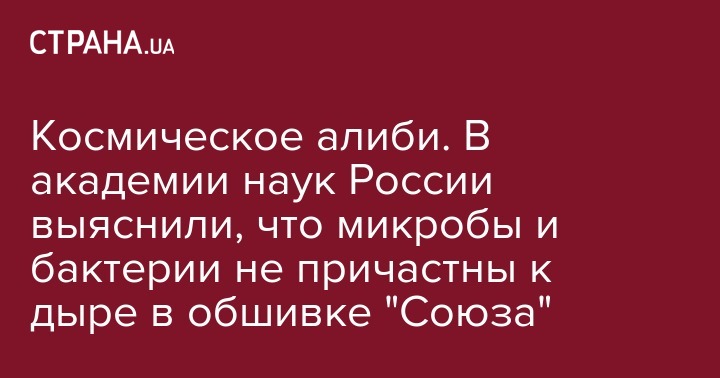 Микроорганизмы не были причастны к появлению отверстия в обшивке российского космического корабля "Союз МС-09", которое было обнаружено в августе 2018 года.