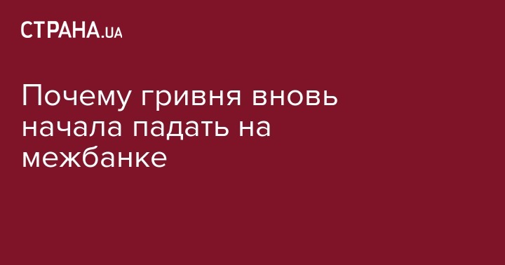 Почему гривня вновь начала падать на межбанке