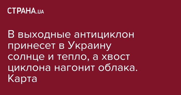 Синоптик Наталья Диденко обещает в выходные сухую и солнечную погоду, поскольку, по ее словам, Украина попадает в сферу влияния антициклона, который накрыл практически всю Европу.