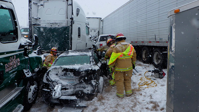 Сержант полиции Коллин Стосберг подчеркнул, что происшествие стало "скоплением цепной реакции", которое около полудня началось из-за одной аварии, а после уже десятки машин не смогли остановиться на ледяной дороге и врезались в них.