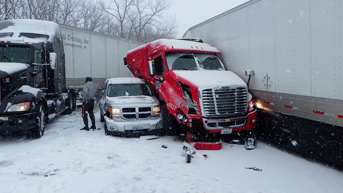 Масштабная авария из-за скользкой дороги случилась у американского города Канзас-Сити. На автомагистрали у города столкнулись не менее 47 автомобилей. В результате аварии один человек погиб, еще семь получили ранения.
